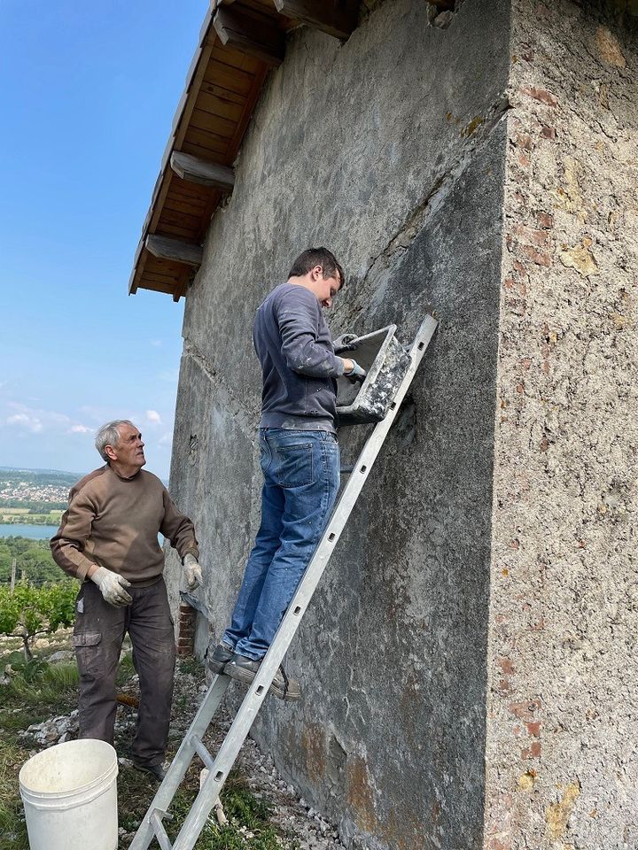 Et pour finir lasurage des linteaux, des poutres et avancées de toit, reprises d’enduit de façade.